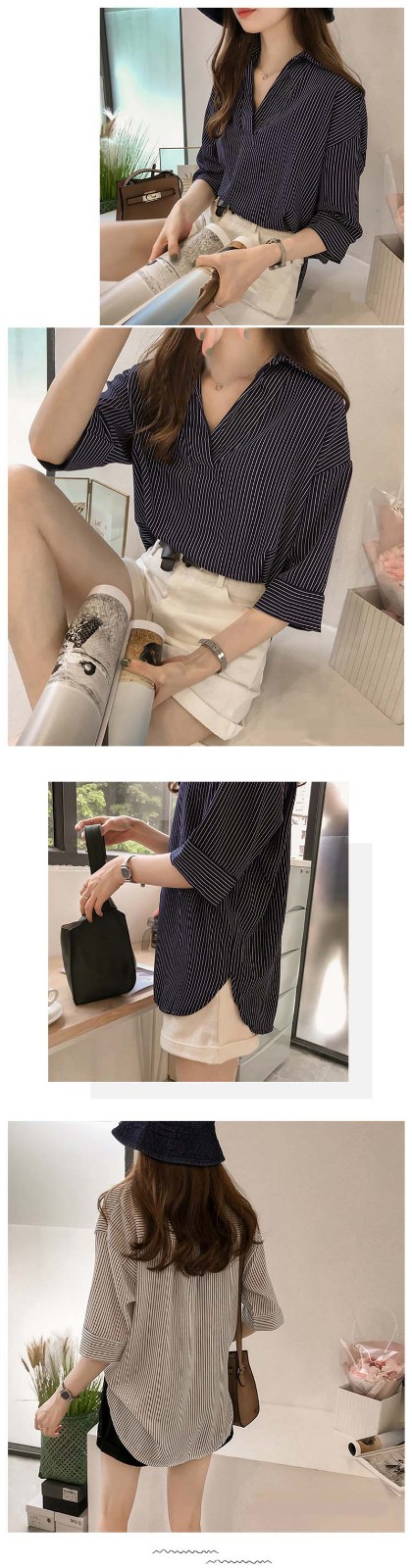 12分鐘前新品上市,勁爆特殺!全場大放送,單件低至NT$432,2020新款夏裝中長款韓版寬松顯瘦條紋襯衫女七分袖,廠家直銷,超值優惠,買到賺到!過後漲價! - 【買一送二】任選3件 僅需NT$1298,單件低至432