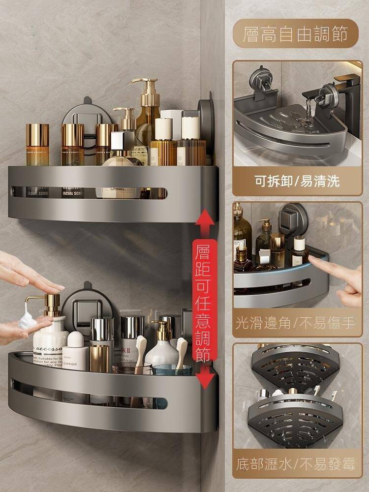 20分鐘前自帶吸盤,可隨時移動重復使用的置物架 免打孔廚房浴室衛生間三角置物架多用途壁掛收納架毛巾架 - 【超夯下殺】買一送二,共三入組 NT$1000